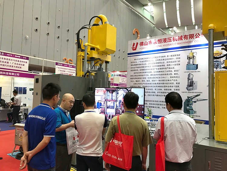 位于2號館2F20的永恒液壓首次亮相廣東機床展,與廣大專業(yè)觀眾積極分享新產(chǎn)品、新技術、新方案。Y98S系列-高速伺服內高壓成型機和Y28S系列-高速伺服拉伸機等液壓機新品,吸引了眾多觀眾的關注。展位人氣持續(xù)高企,進場咨詢、洽談的客戶絡繹不絕,三天接待近300家企業(yè)。